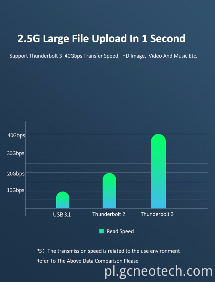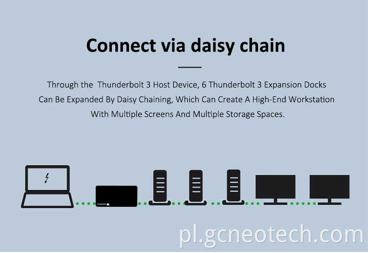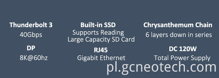 B. Obsługuje 2x Thunderbolt3 40 Gb / s i łańcuch Daisy Thunderbolt3.